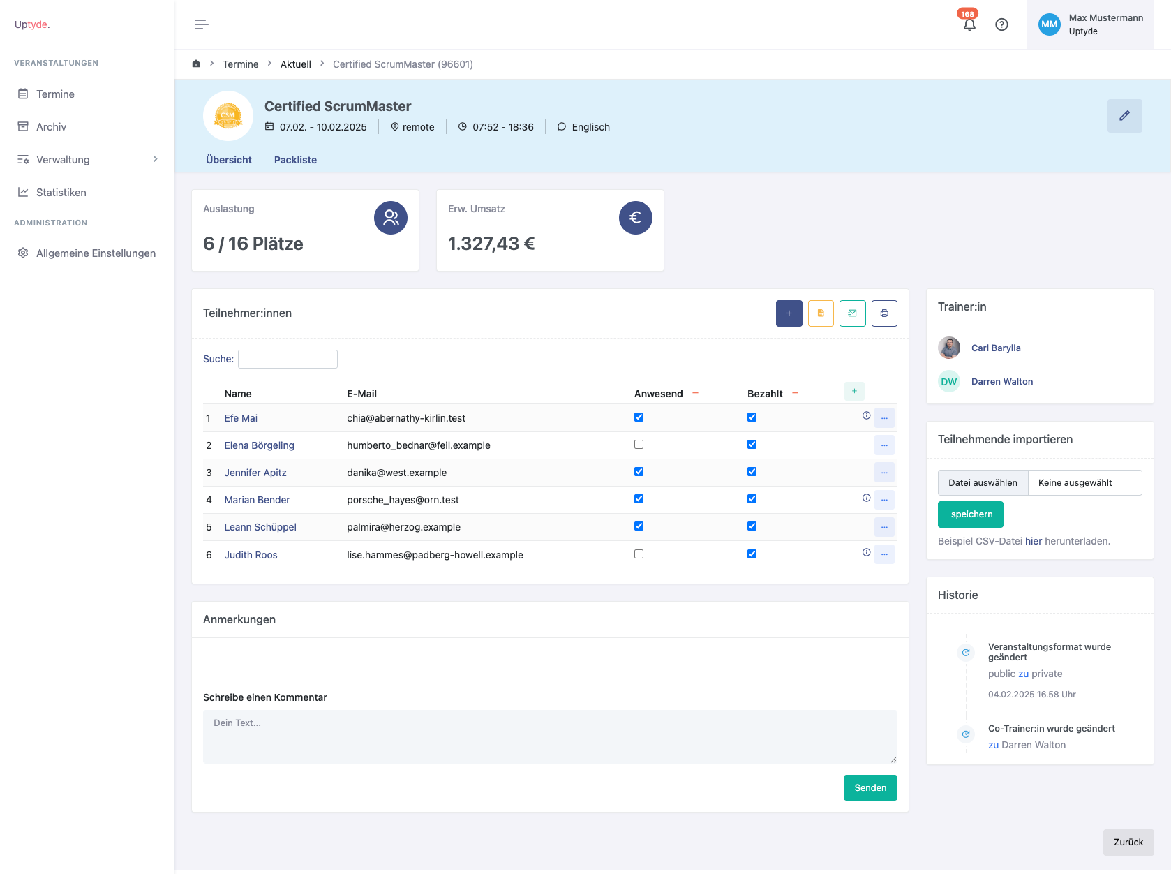 Uptyde ist ein vielseitiges Trainings- und Eventmanagement-System.